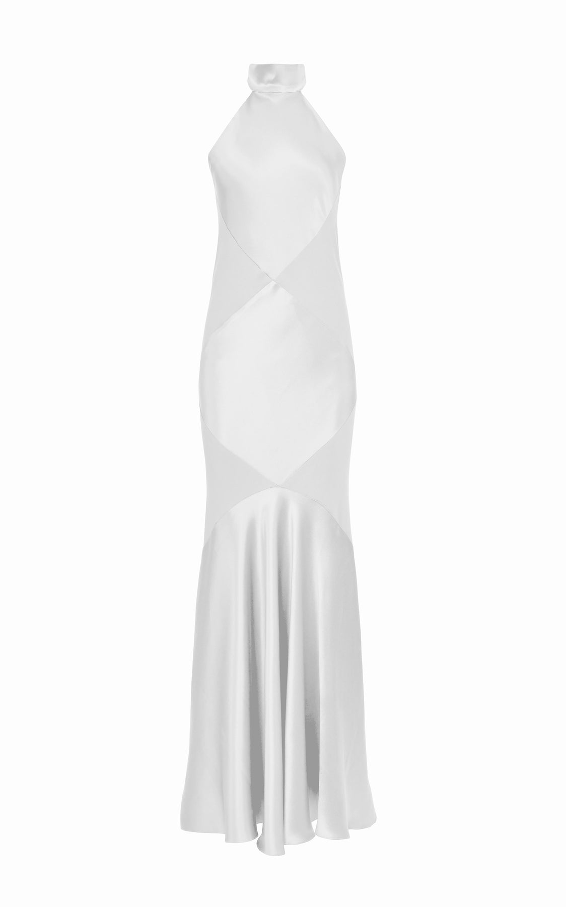 The Snowdrop Silk Dress features a high halter neckline and a softly contoured, floor-length silhouette. Clean and elongated, it moves effortlessly with the body, offering refined elegance with a modern, understated feel.